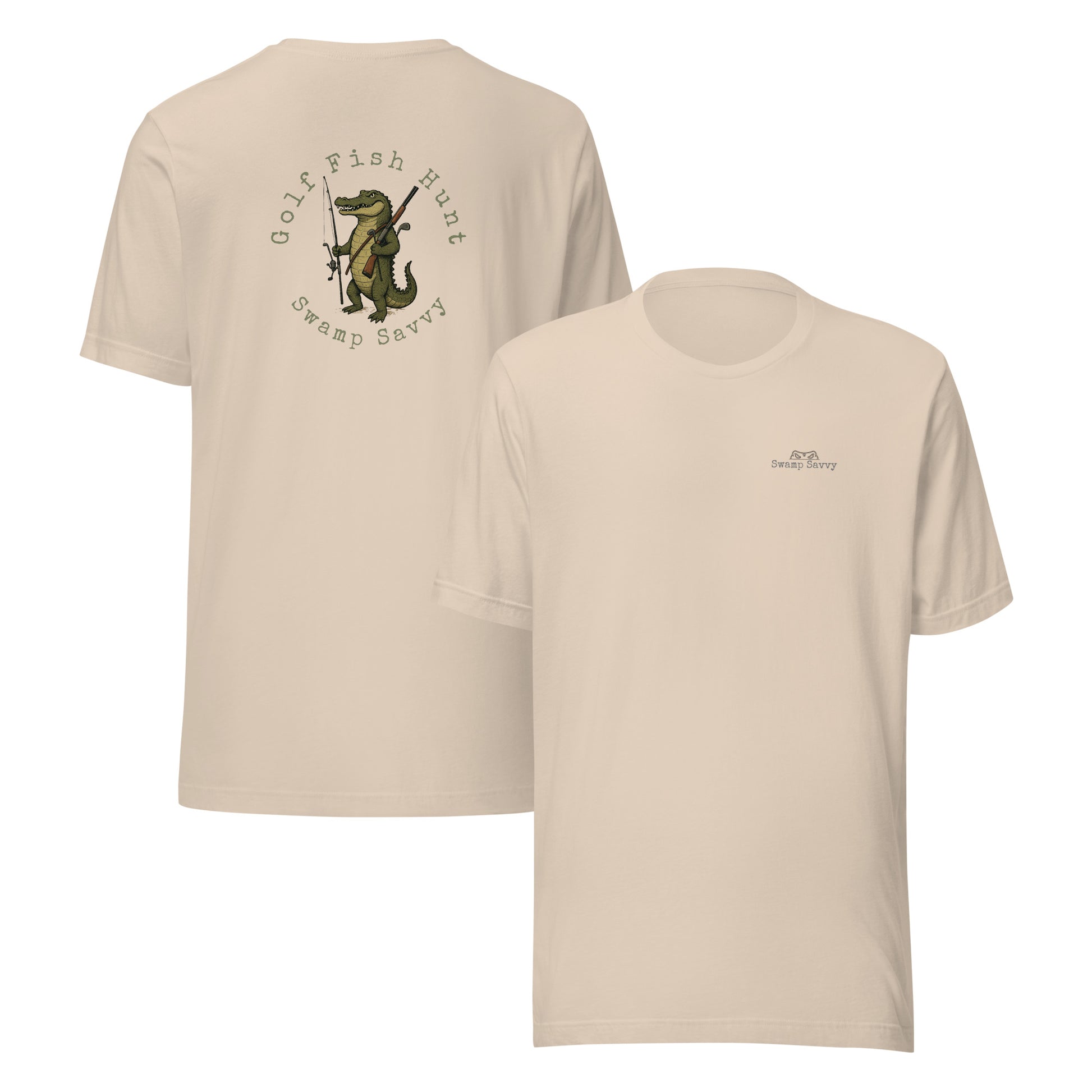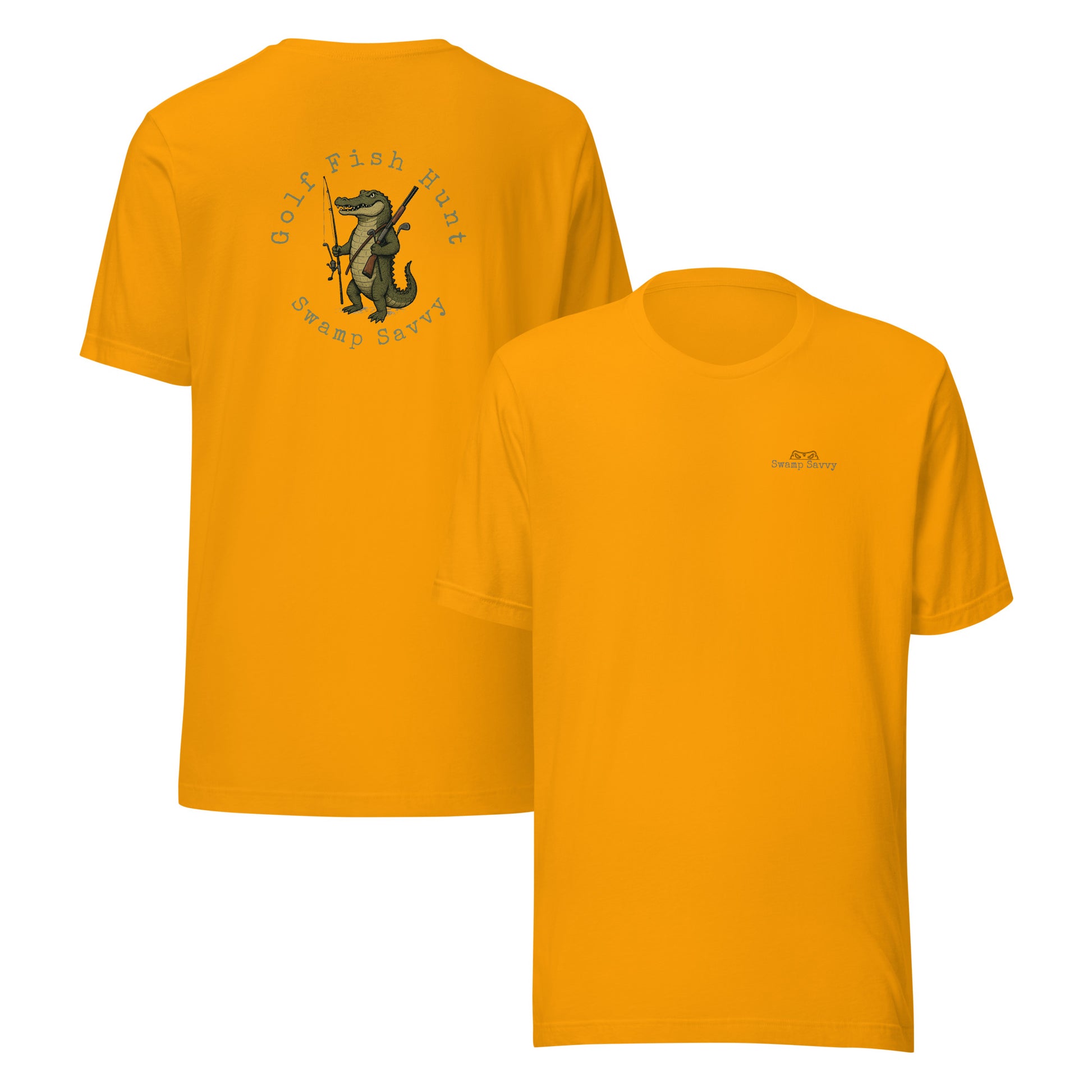 Celebrate your man’s (and woman’s!) love of golfing, fishing and hunting, while honoring their knowledge of the swamp with this teasing alligator tee!